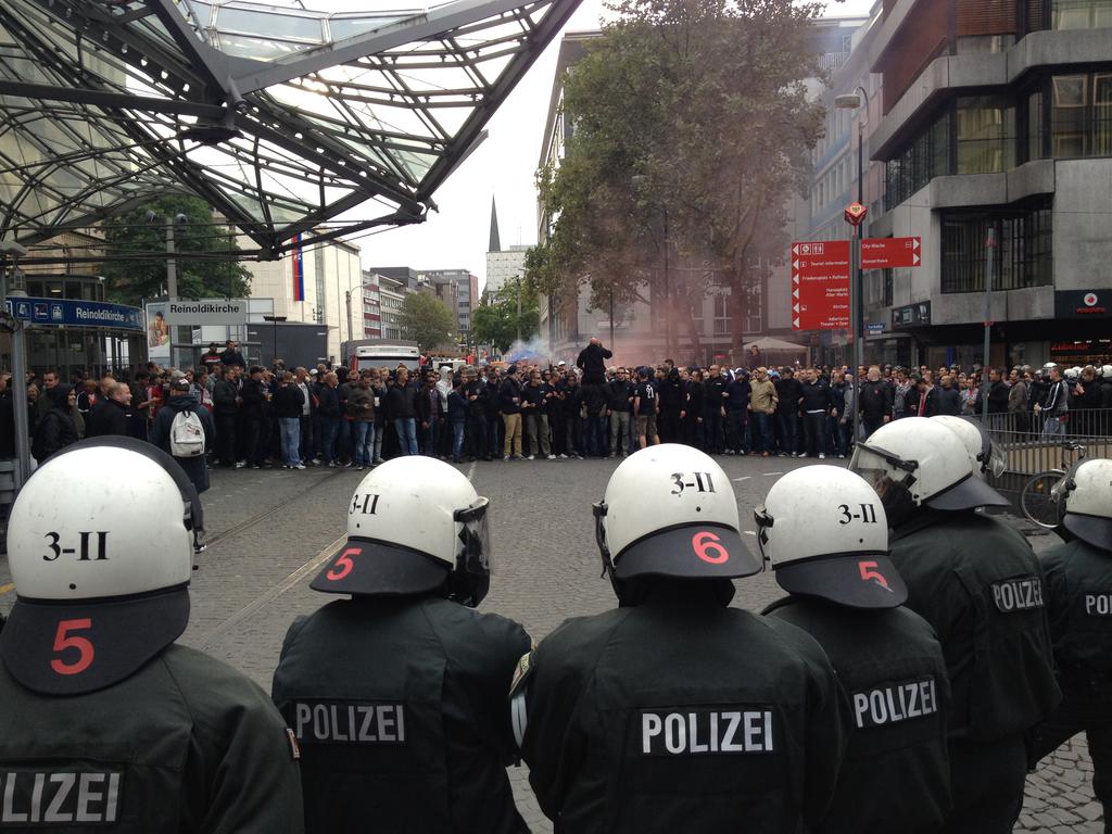 Plusieurs wagons de tramway ont été endommagés dont plusieurs qui n'étaient plus en état de circuler. Une trentaine de personnes ont été arrêtés pour des actes de vandalisme et utilisations de matériels pyrotechnie tandis que reste des supporters de Ajax étaient escortés à pied par la police jusqu'au Westfalenstadion. Une vingtaine de personnes avaient été interpellées plus tôt dans la journée pour d'autres incidents provoqués en ville...
